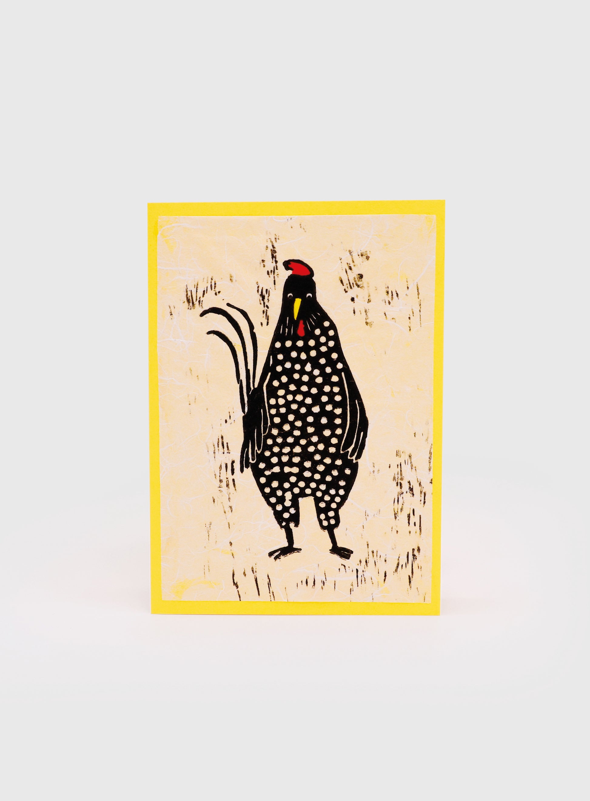 Ein charakterstarker Gockel im handgedruckten Linolschnitt – kraftvoll, charmant und voller Frühlingsenergie. Diese Karte bringt den Zauber traditioneller Druckkunst und einen Hauch Osterstimmung zusammen. Ideal zum Verschenken, Dekorieren oder als besondere Botschaft für Menschen, die das Aussergewöhnliche lieben.